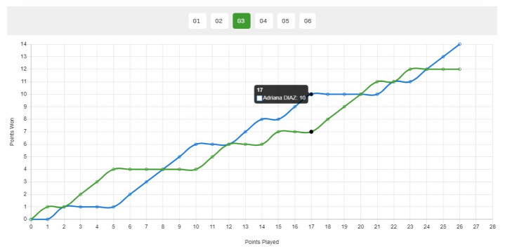 在前两局陈幸同较为轻松的拿下后,25岁的迪亚兹进入状态,第三局迪亚兹10-6拿到局点,陈幸同追到10-10,随后两人11-11、12-12,关键分迪亚兹拿下。